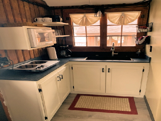 Cabin Three - Affordable Lake Front Log Cabin Our lake front log Cabin Three is one of our smaller vacation rentals featuring a large deck overlooking the lake. One room with a kitchen, dining/living area, bathroom with shower and three separate beds. Our modern lake front log cabin comes with all of the amenities you would expect, including a fully equipped kitchen, Linens, dishes/pots & pans, microwave, high speed internet, satellite HDTV and more!